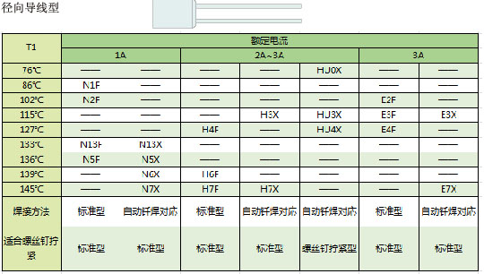 選定溫度保險絲時,請選擇適合該制品之定額電壓?定額電流及最高使用溫度。此外,依安裝方法選定導線加工品,可大幅簡化貴公司設計及降低生產成本的可能性。